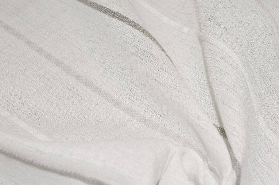Tessuto per tendini a vetro gia orlato sui laterali. La composizione impedisce alla stoffa di assumere stropicciature indesiderate. Il fondo bianco naturale (non bianco ottico, non panna) presenta una graziosa trama effetto lino la quale permette alla luce naturale di filtrare facilmente illuminando l'ambiente. Una volta affisso risulterà inoltre cadente e semicoprente.