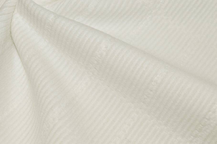 Tessuto di cotone leggermente elasticizzato dalla struttura idonea per confezionare giacchette. La principale caratteristica di questa stoffa che la distingue dalle altre è la particolare trama composta da piccole costine di 2 mm in rilievo.( aspetto simile al velluto a coste) Ci sono inoltre scacchi ricamati di 2,7x3,5 cm che realizzano una bellissima scacchiera in tono su tutto il fondo.