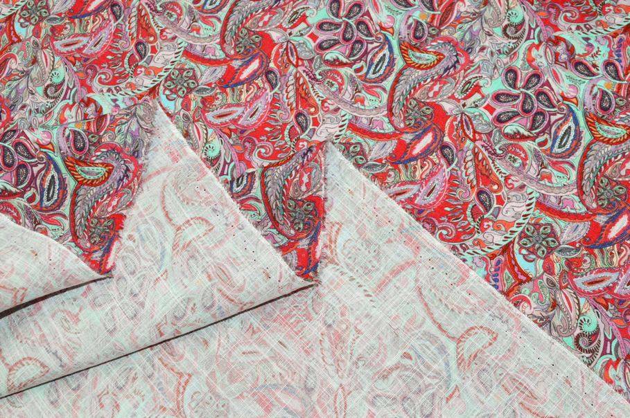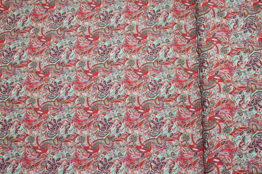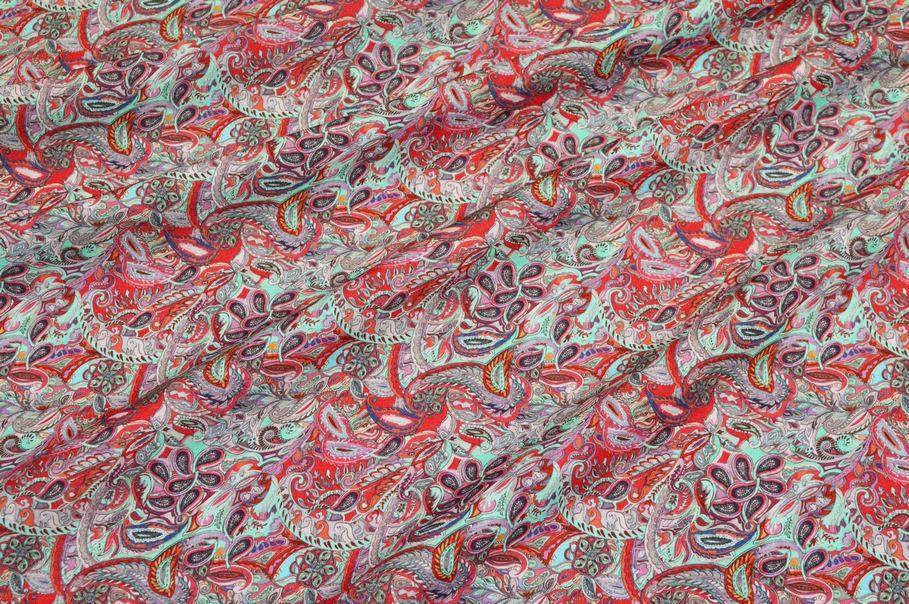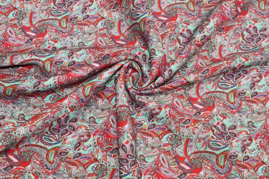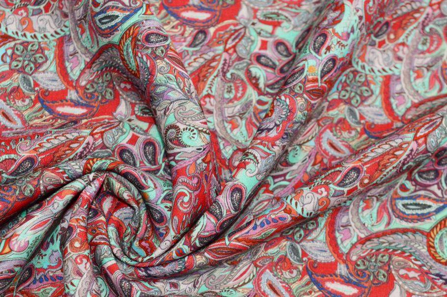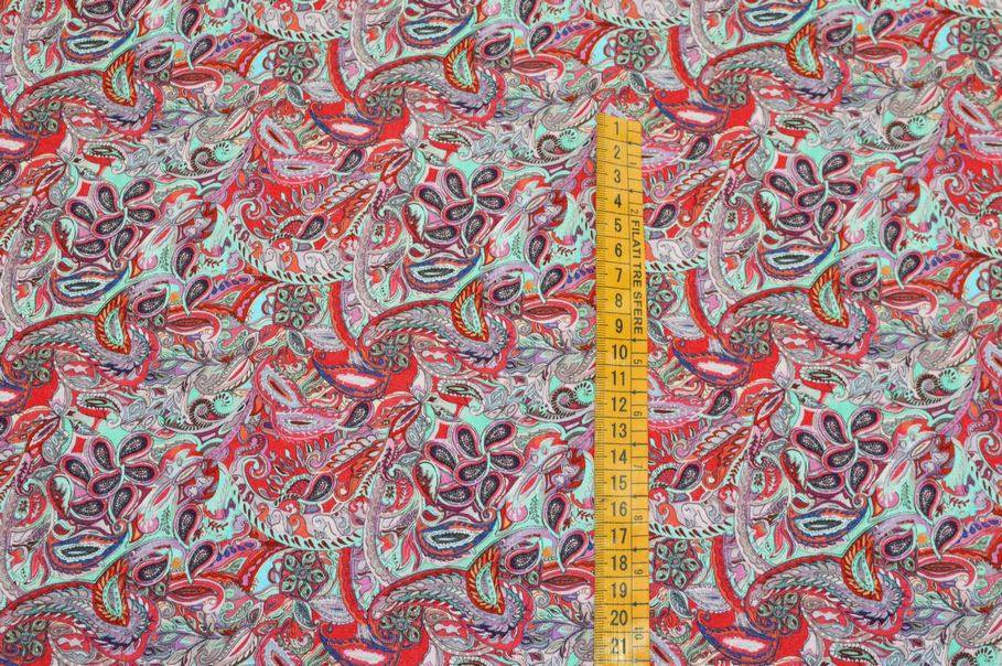 Ad abbellire la stoffa troviamo inoltre il coloratissimo ed iconico motivo cashmere che prende vita dal bellissimo contrasto dei dettagli rossi e verde acqua accotati.