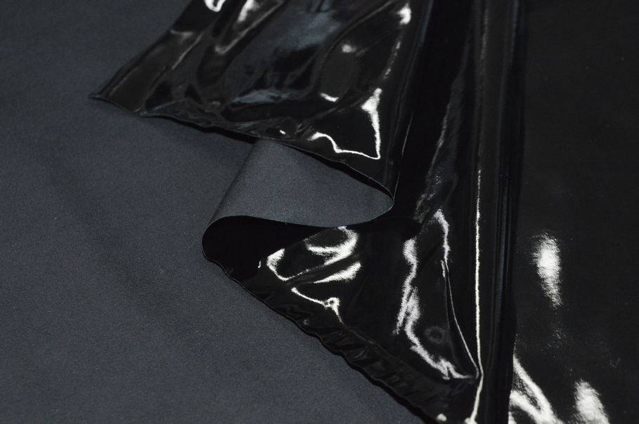 Tessuto in ecopelle con superficie laccata dall'aspetto molto lucido con alta resistenza alle abrasioni che ne permette un uso duraturo nel tempo senza perdere la brillantezza e la solidità del colore.