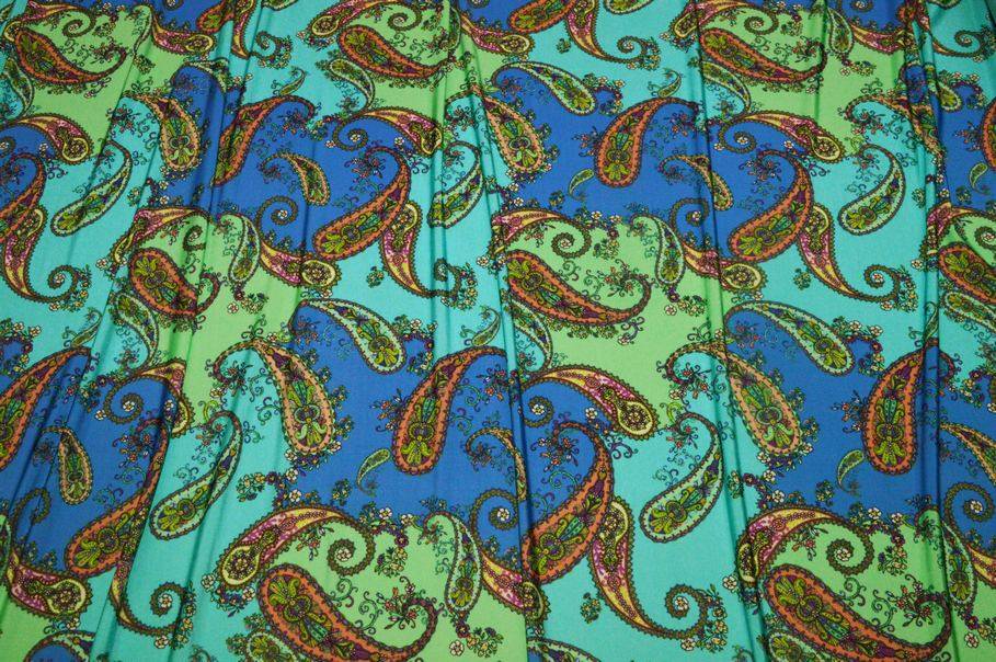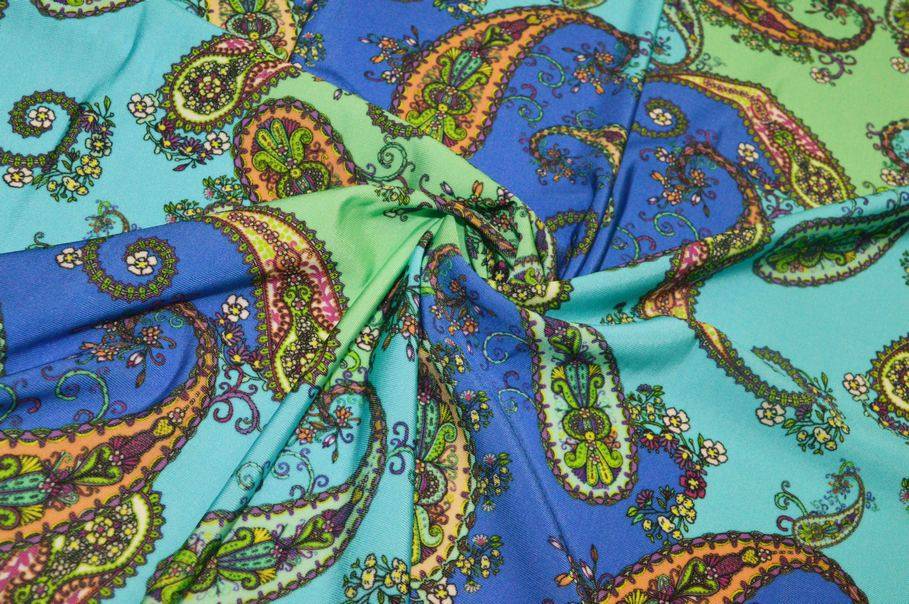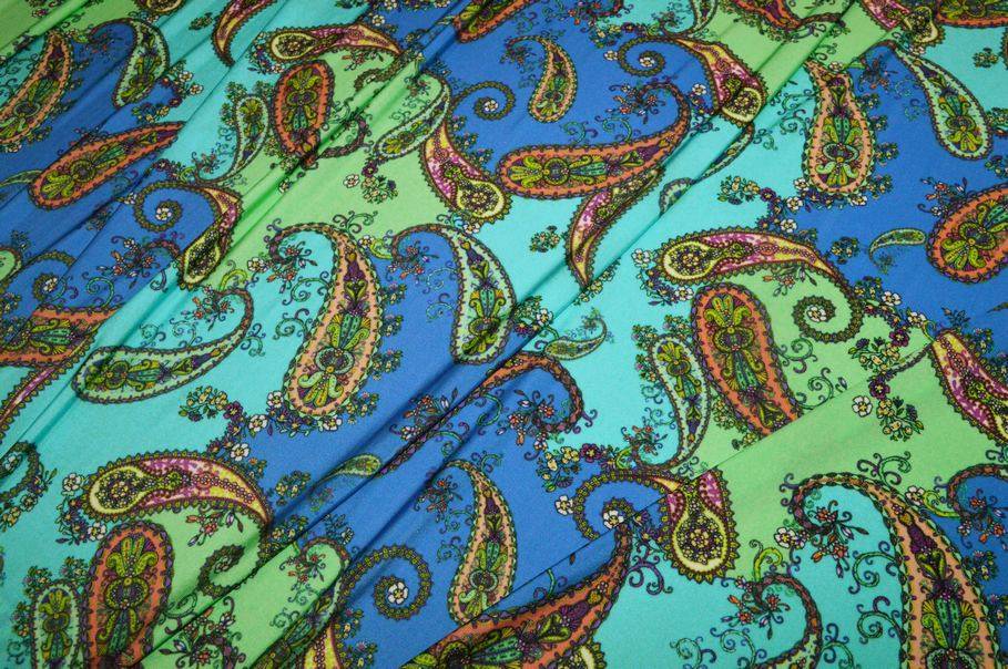 Vendita online tessuti abbigliamento viscosa tessuto maglina viscosa disegno cashmere verde blu - Tessuti & Stoffe