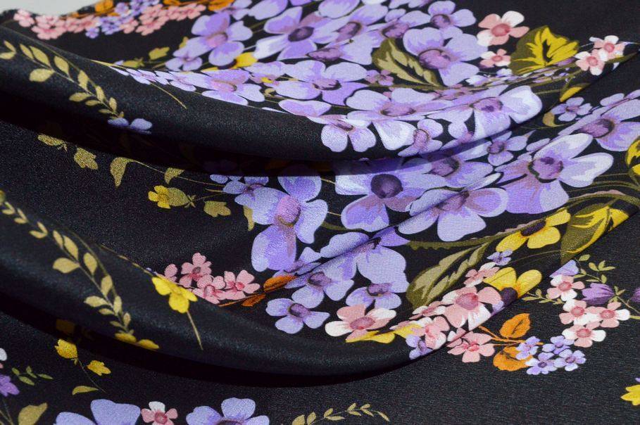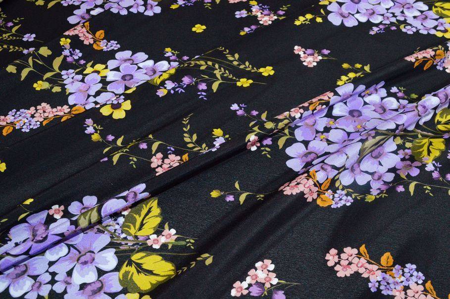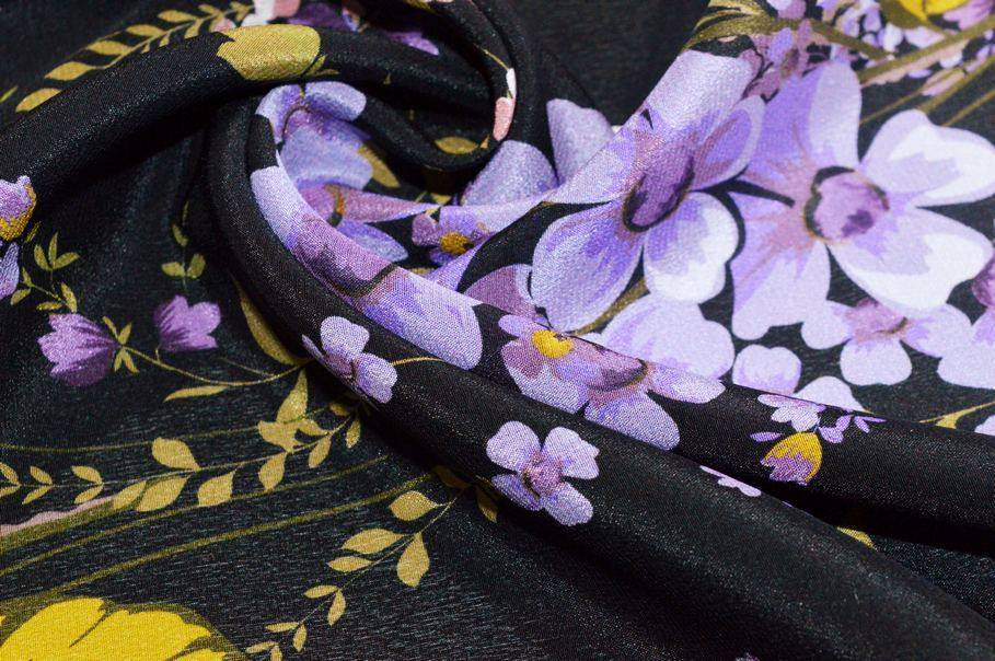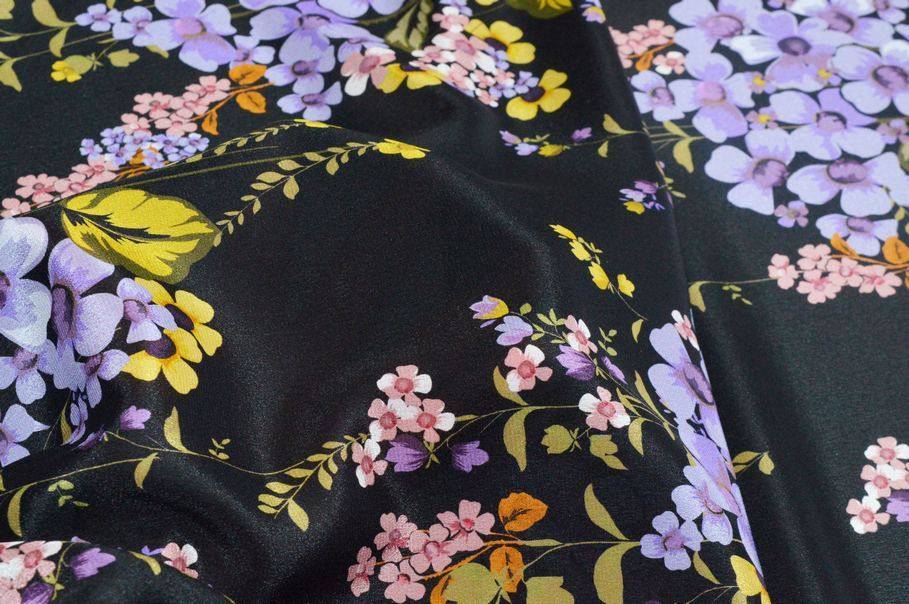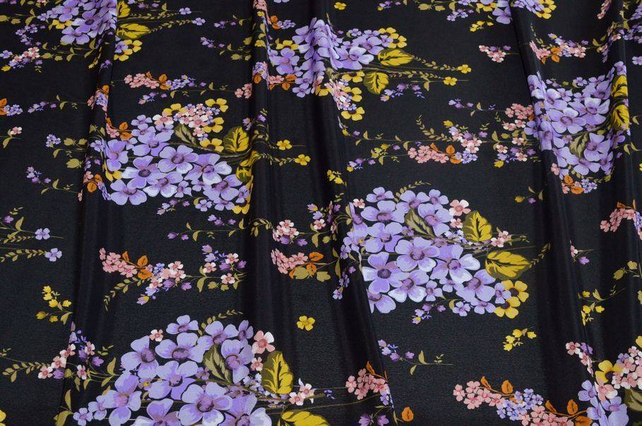 La colorazione scelta per il fondo è un classico ed intramontabile nero che fa spiccare le colorazioni lilla e rosate dei motivi floreali.