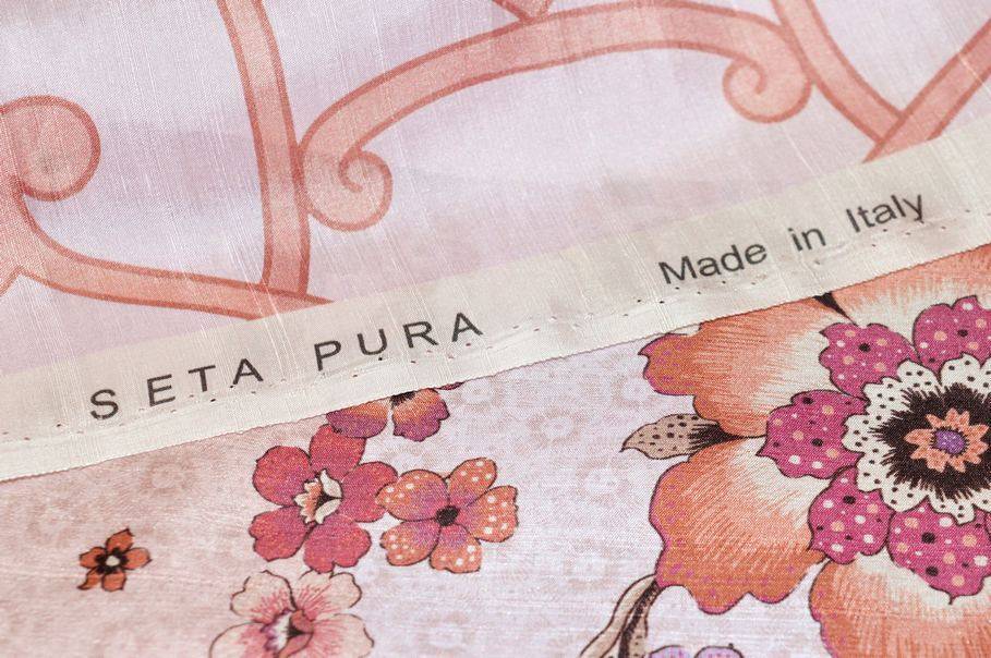 Composizione 100%seta, altezza cm 135, peso gr 90 al MT lineare.