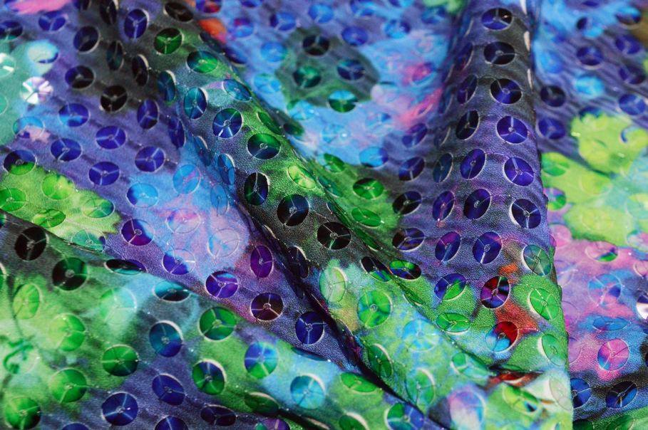 Vendita online tessuti abbigliamento poliestere tessuto con paillettes cucite multicolor - Tessuti & Stoffe