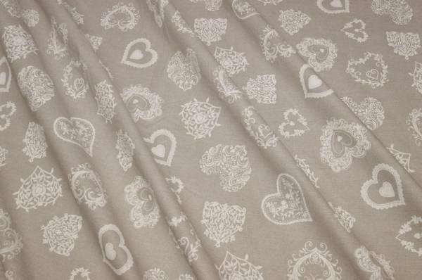 TESSUTO PURO COTONE FANTASIA CUORE TIROLESE AVORIO