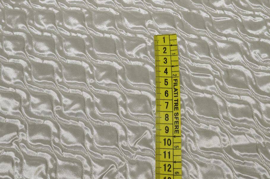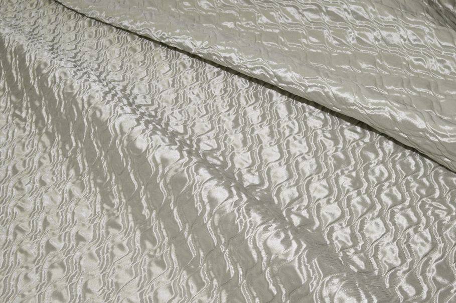 Particolare tessuto in misto viscosa caratterizzato da un design originale e distintivo. L'aspetto che emerge maggiormente di questa stoffa è la lavorazione del fondo effetto goffrato la quale va a ricreare un disegno tridimensionale sulla superficie della stoffa rendendola irregolare. Questa particolarità fa si che la struttura del tessuto sia leggera, ma sostenuta e voluminosa allo stesso tempo.