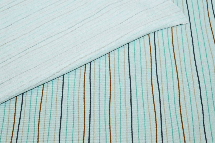 Il design opta per uno stile semplice, ma giocoso ed allegro sfoggiando una micro righina multicolor su fondo verde acqua pastello.