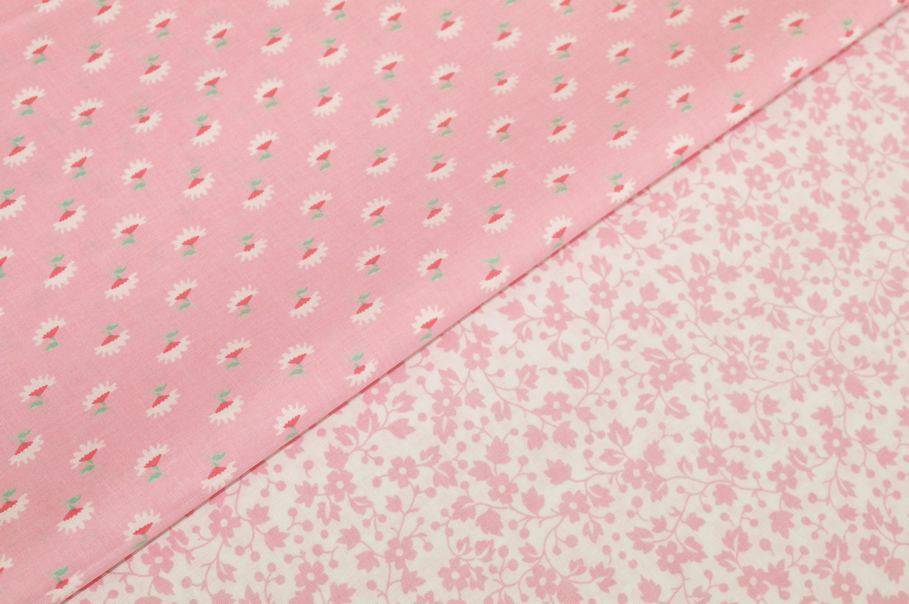 Tessuto di puro cotone con fantasie a tema primaverile abbinabili tra loro. Il primo disegno presenta un candido fondo bianco che mette in evidenza i delicati e minuti fiorellini rosa che decorano la stoffa a campo pieno. La seconda fantasia invece inverte la posizione dei colori collocando il rosa sul fondo. Misura fiori 1x1 cm circa.