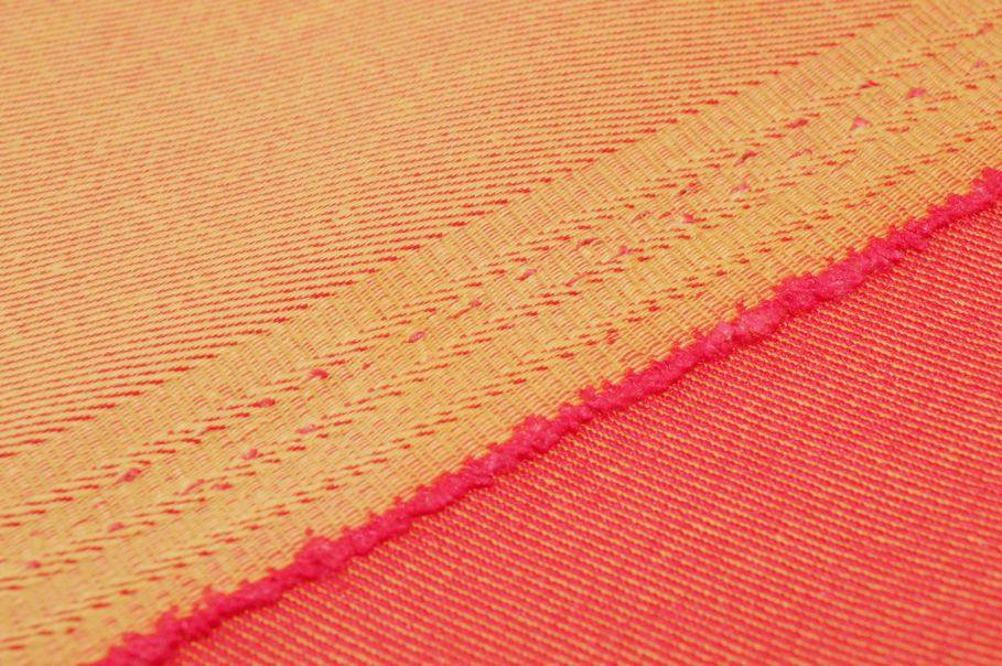 Nonostante la sua robustezza l'indosso di tale tessuto risulterà ugualmente comodo ed agevole poiché presenta una mano leggermente elasticizzata. La particolarità che lo distingue dagli altri jeans è la colorazione del fondo che all'apparenza sembra essere un tinta unita arancio, ma offre invece un bellissimo effetto cangiante rosso.