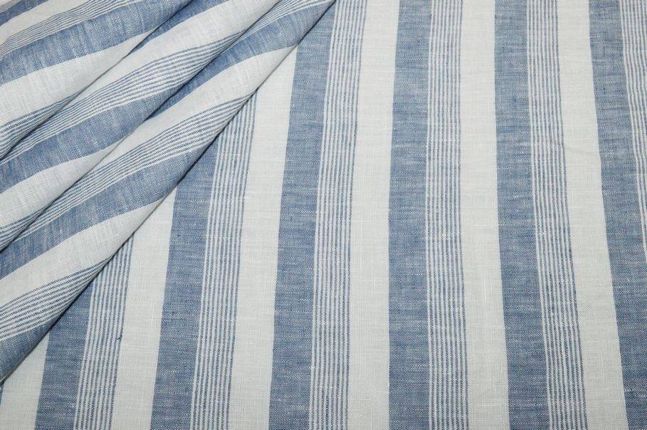 TESSUTO PURO LINO RIGONE BLU MELANGE