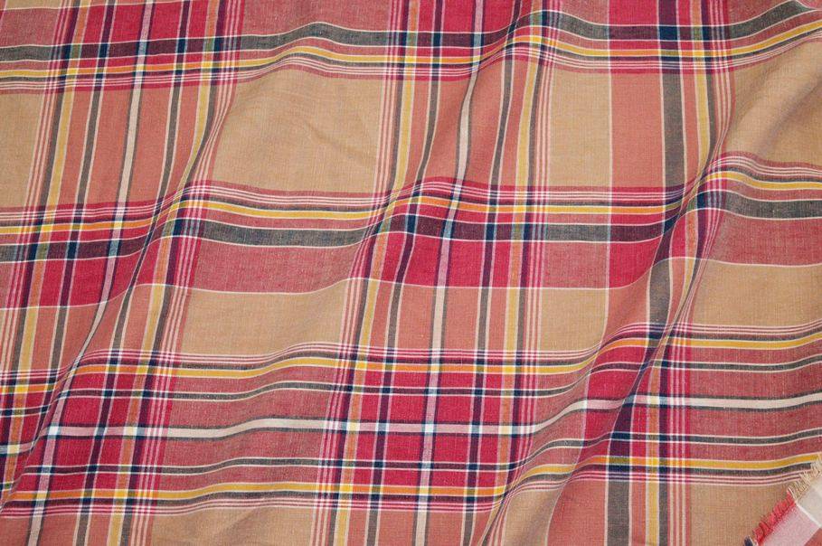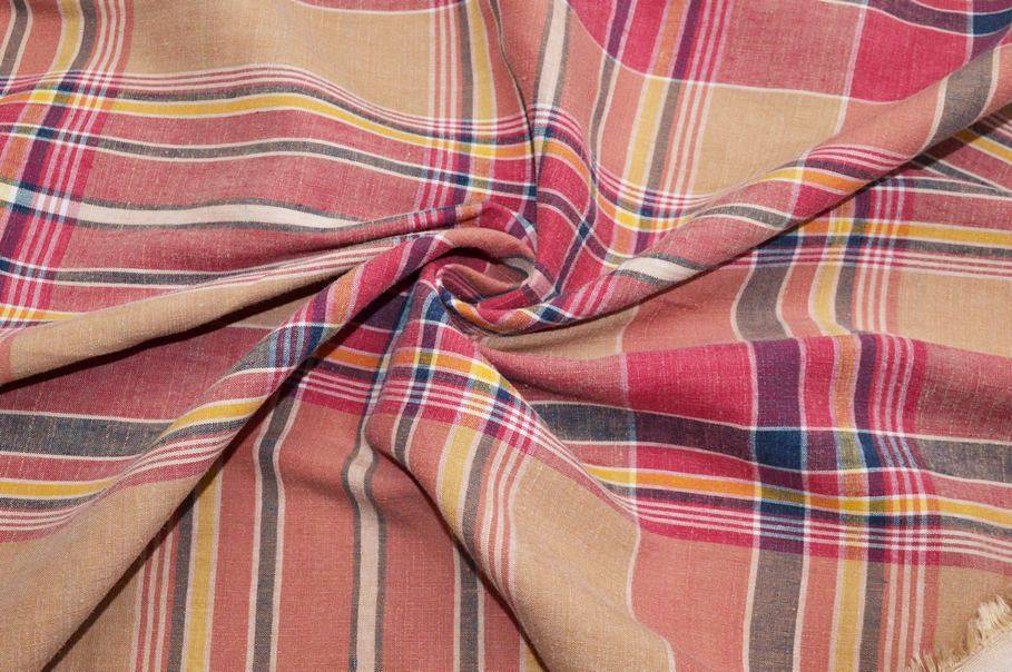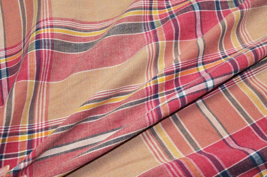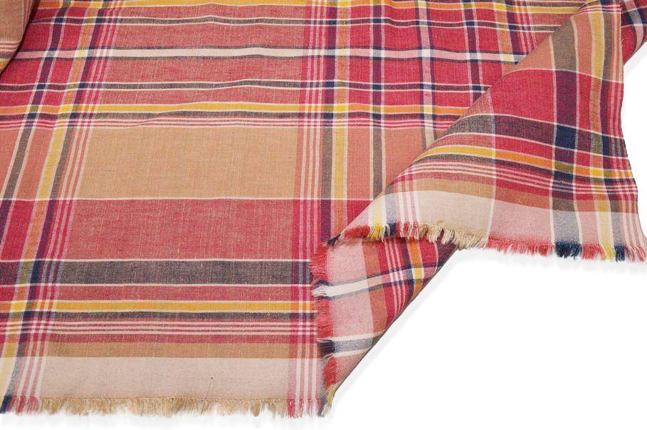 TESSUTO PURO LINO FANTASIA SCOZZESE COLORI CALDI