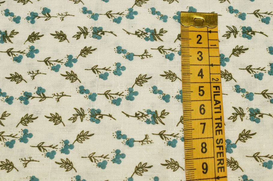 TESSUTO TELA PURO COTONE FIORELLINO AZZURRO