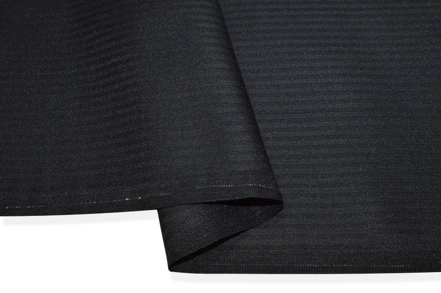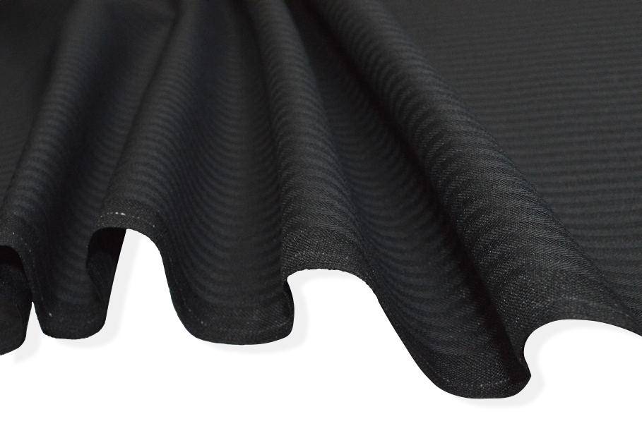 Fodera tasche di puro cotone nera con trama lavorata che ricrea una rigatura in tono di 2,5 mm. Consigliato l'utilizzo per la rifinitura e foderatura delle tasche dei capi d'abbigliamento.