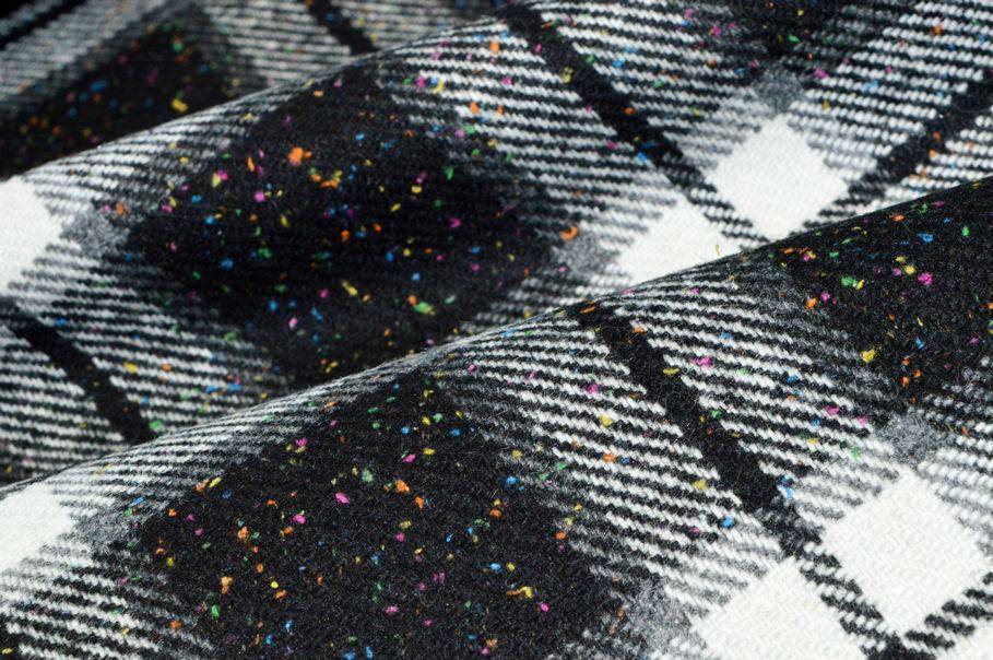 Un'altrà peculiarità della stoffa è l'originale aspetto estetico caratterizzato da una quadrettatura bianca e nera. Lo scacco differisce dagli altri del suo genere per la presenza di piccoli puntini multicolore che aggiungono un tono giovanile e sbarazzino alla stoffa.