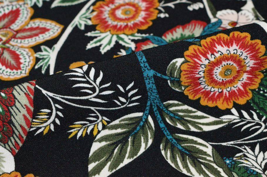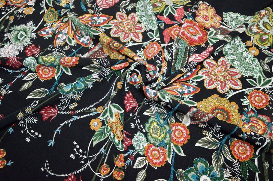 Vendita online tessuti abbigliamento poliestere scampolo crepe fantasia piazzata floreale nero - Tessuti & Stoffe