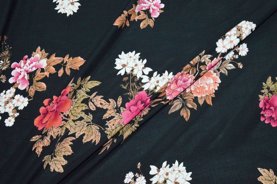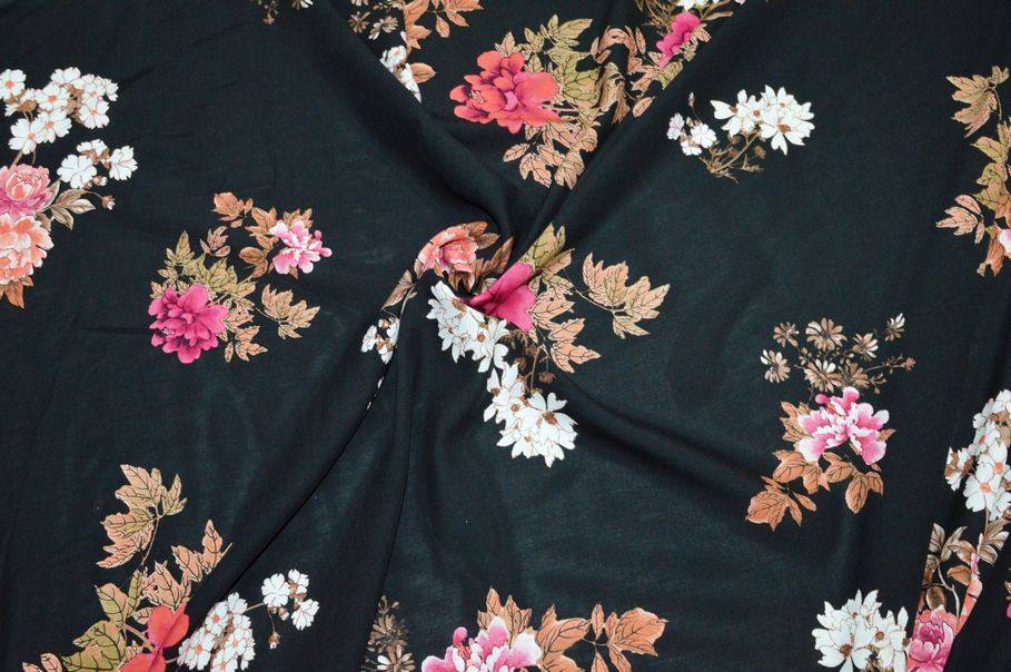 Vendita online tessuti abbigliamento viscosa tessuto pura viscosa giavanese fantasia floreale fondo nero - Tessuti & Stoffe