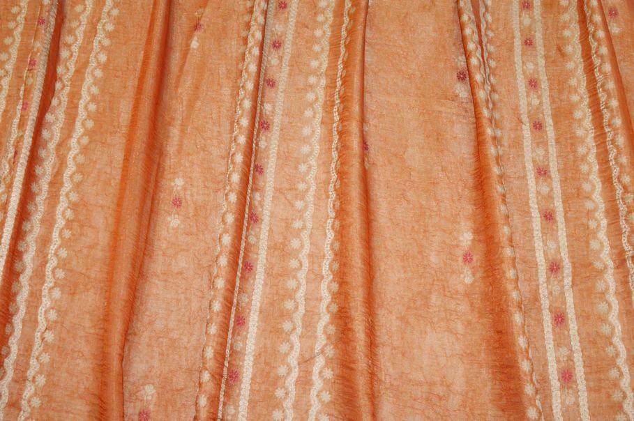 Vendita online tessuti per tende offerta tessuto doppia organza arancio con fiore ricamato - Tessuti & Stoffe