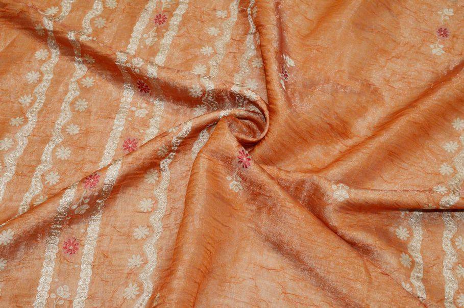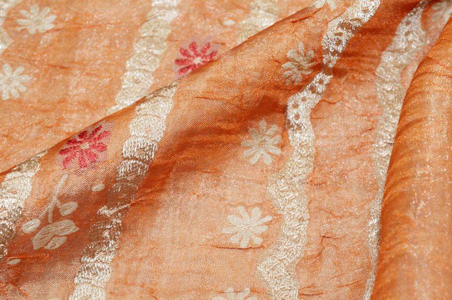 TESSUTO DOPPIA ORGANZA ARANCIO CON FIORE RICAMATO