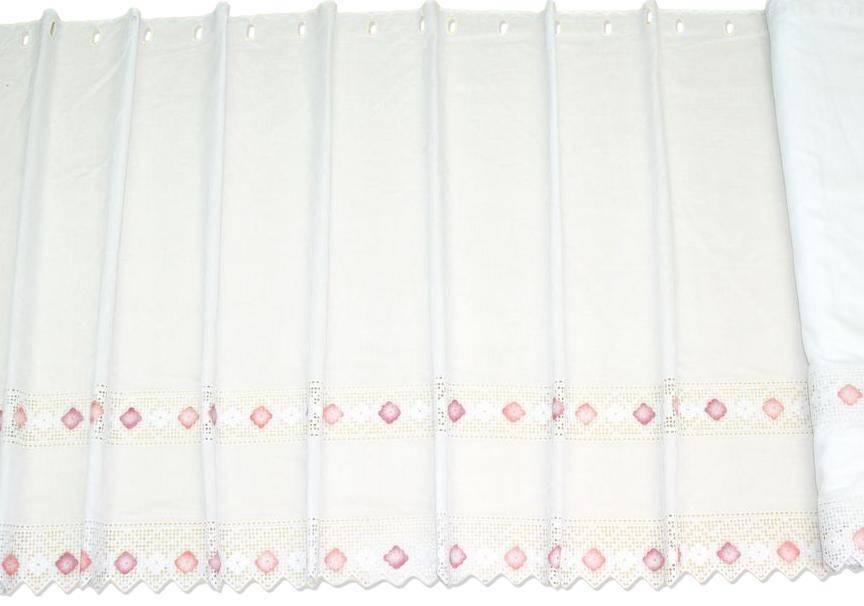 Vendita online tessuti per tende tendine confezionate vetro tessuto tendino con incassi pizzo fiorellino rosa - Tessuti & Stoffe