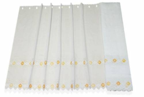 Vendita online tessuti per tende tendine confezionate vetro tessuto mantovana misto lino ecru con incasso pizzo macrame - Tessuti & Stoffe