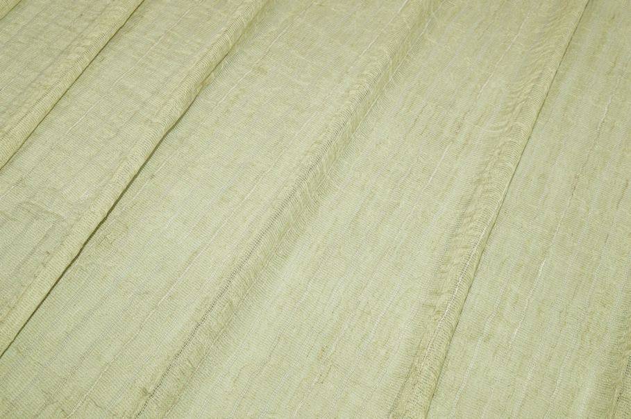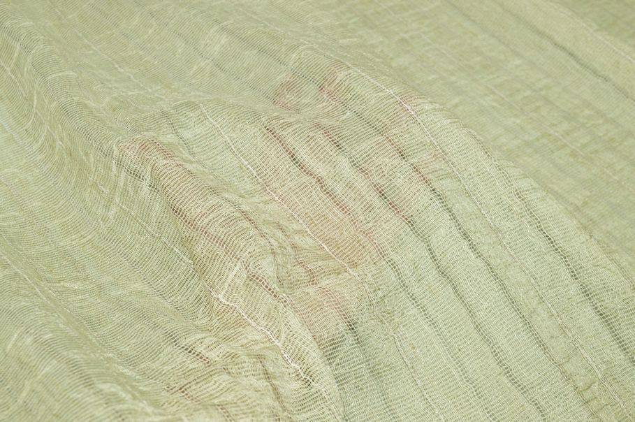Tessuto indicato per la confezione di tende sia con onde morbide, sia con arricciature ricche e voluminose. La colorazione scelta per il fondo è un delicato verde chiaro che viene decorata da sottili righe verticali distanti 1,8 cm ciascuna. Un'altra particolarità del tessuto sta nella superficie pieghettata che va a creare il bellissimo effetto stropicciato. La trama effetto garza della stoffa ha una mano ariosa, semicoprente e filtrante alla luce, ottima per illuminare le stanze.