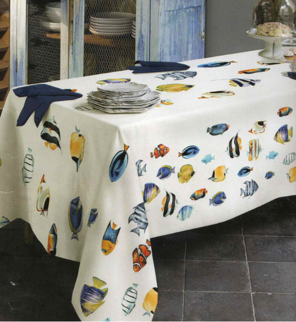 Vendita online tessuti arredo casa per tovaglie tovaglia puro cotone stampa digitale tessitura randi 12 posti disegno pesci - Tessuti & Stoffe