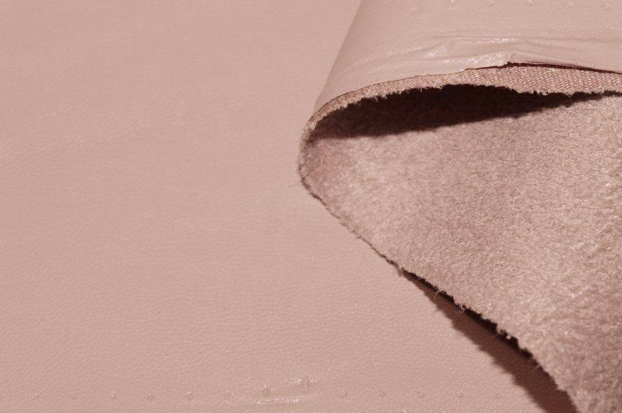 Tessuto di finta pelle finalizzata alla creazione di capi d'abbigliamento ed accessori moda maschili e femminili. La struttura di questa stoffa si compone con un dritto in ecopelle cipria ed un rovescio molto morbido e vellutato con superficie effetto dainetto. Nella sua composizione troviamo una piccola traccia di elastan che gli conferisce elasticità permettendo di svolgere movimenti con il corpo senza difficoltà.