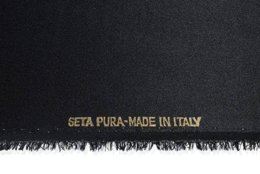 Ottimo tessuto in pura seta 100%Made in Italy dalla superficie molto liscia e luminosa. Questo materiale, oltre ad essere leggero e molto fresco, ha una mano elasticizzata che permette alla stoffa di avvolgere con facilità ogni tipologia di fisico senza risultare fastidioso e senza intralciare i movimenti durante l'indosso.