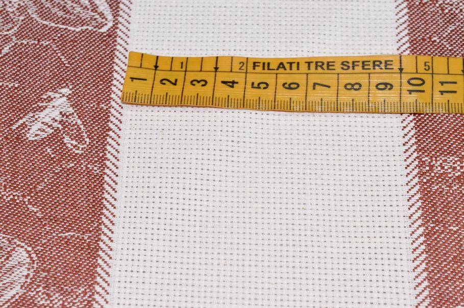 Ottimo tessuto realizzato con filati totalmente naturali. In questo caso viene infatti adoperato dell'ottimo puro cotone ritorto che dona al prodotto una mano resistente, compatta e duratura nel tempo. Il tessuto ha il taglio obbligato ogni 84,5 cm che rappresenta la lunghezza di ogni strofinaccio. Presenta inoltre un incasso in tela aida da 9 cm ricamabile a piacimento.