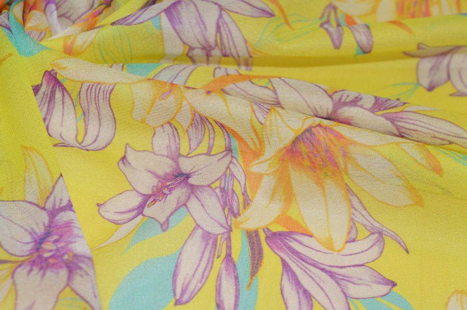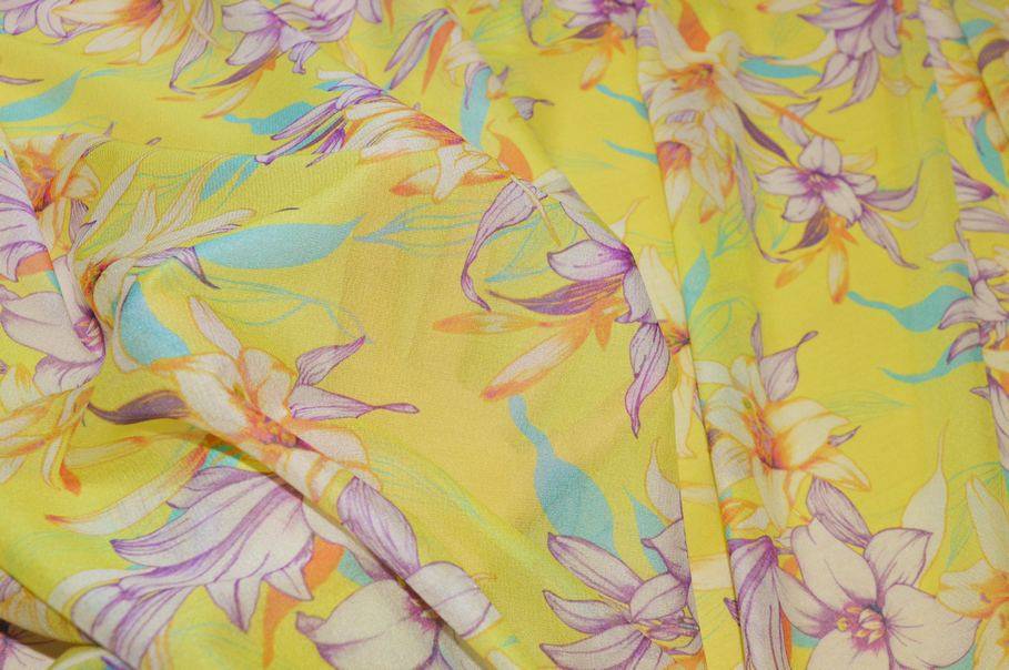 TESSUTO GEORGETTE SETA STRETCH MOTIVO FLOREALE GIALLO