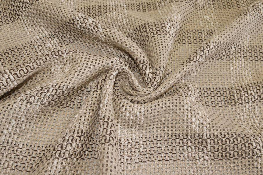 TESSUTO MAGLIA IN LINO E COTONE EFFETTO RETE SCACCO BEIGE
