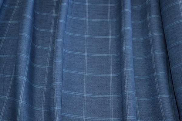 Vendita online tessuti abbigliamento lino tessuto puro lino finestrato azzurro - Tessuti & Stoffe