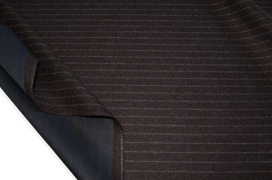 Il design propone un elegante gessato marrone scuro. Misura gessatura 1,3 cm.