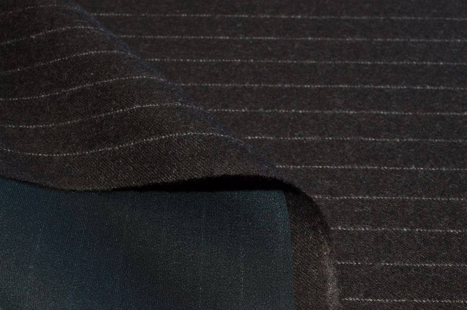 Vendita online occasioni scampoli lane cashmere tessuto flanella pura lana gessato marrone scuro adesivato - Tessuti & Stoffe