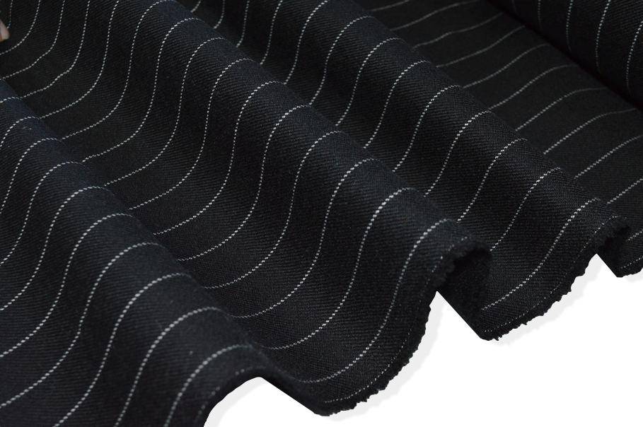 Vendita online occasioni scampoli lane cashmere tessuto gabardine pura lana gessato nero adesivato - Tessuti & Stoffe