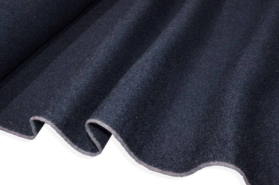 La particolarità del tessuto sta nella colorazione blu che ricrea l'aspetto del jeans.