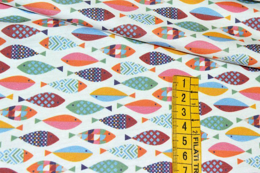 Vendita online occasioni scampoli magline stock tessuto maglina cotone stretch fantasia mare multicolor - Tessuti & Stoffe