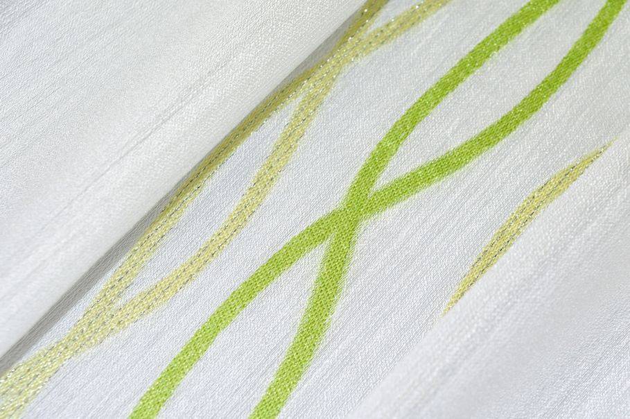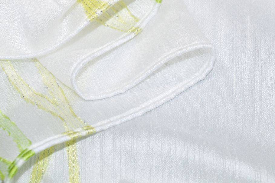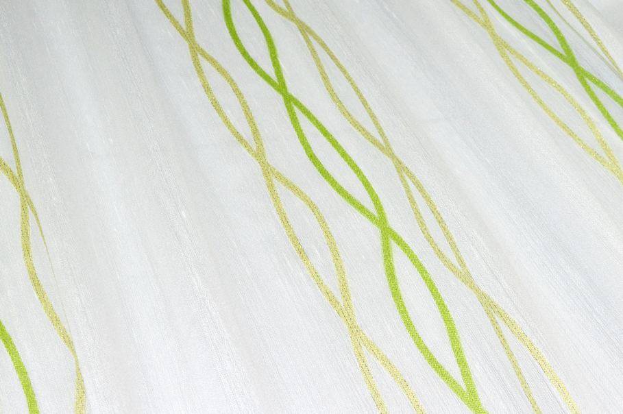 Ad impreziosirlo c'è una lavorazione geometrica composta da fasce ondulate color verde lime e verde mela, disposte a distanza di circa 26 cm l’una dall’altra. Questo decoro, elegante e originale, dona originalità al tessuto senza appesantirlo.