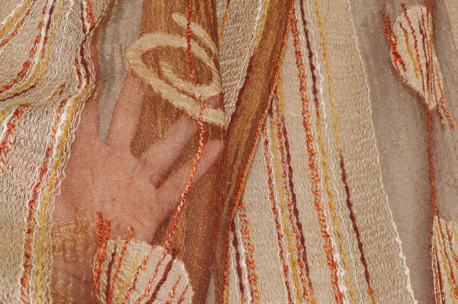 Le fasce alternano toni caldi del bruciato e sono impreziosite da fili in ciniglia in rilievo nei colori giallo e arancio, che donano movimento e vivacità al tessuto. Questa combinazione crea un effetto elegante e accogliente, ideale per valorizzare ambienti classici.