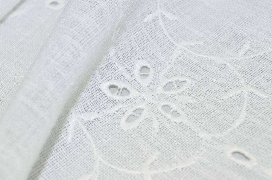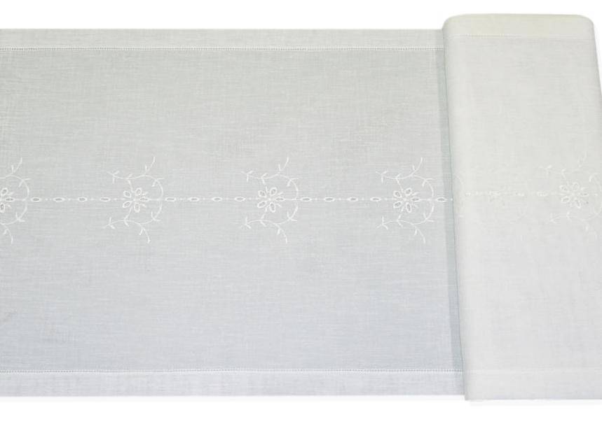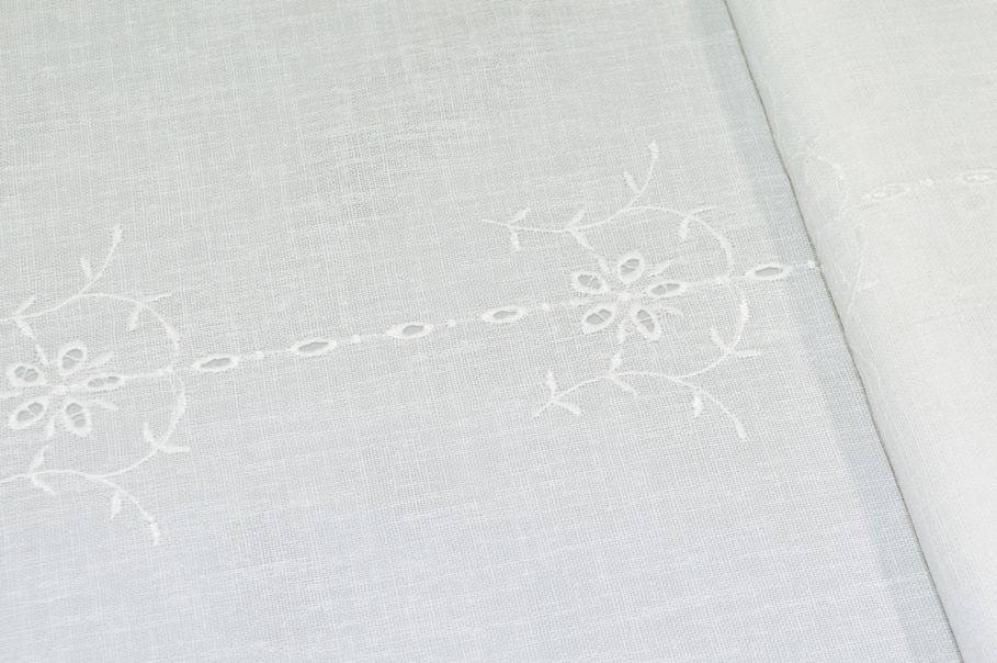 Il tessuto è impreziosito da un delicato ricamo floreale al centro. La distanza tra il centro di un fiore e l’altro è di circa 16 cm.