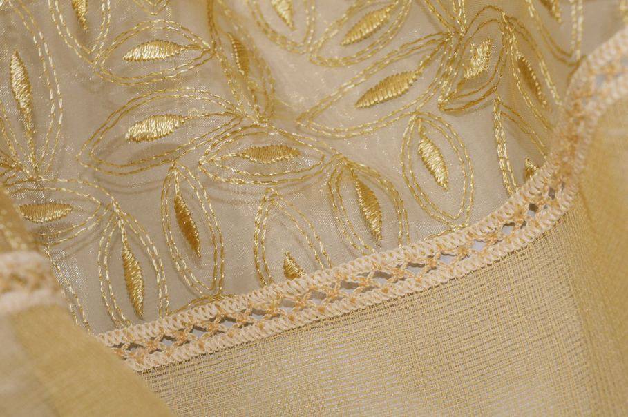 Vendita online tessuti per tende tendine metraggio vetro tessuto tendino organza ricamata ocra - Tessuti & Stoffe
