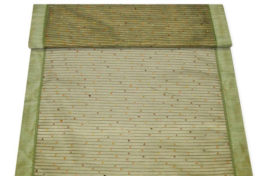 Tendino in organza leggera e luminosa, caratterizzata da una particolare finitura cangiante che, a seconda di come riceve la luce, riflette delicate gradazioni di verde e oro, donando dinamismo e brillantezza all’ambiente.