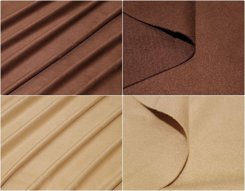 Tessuto dainetto leggermente elasticizzato, caratterizzato da un effetto daino scamosciato e da una pesantezza media.