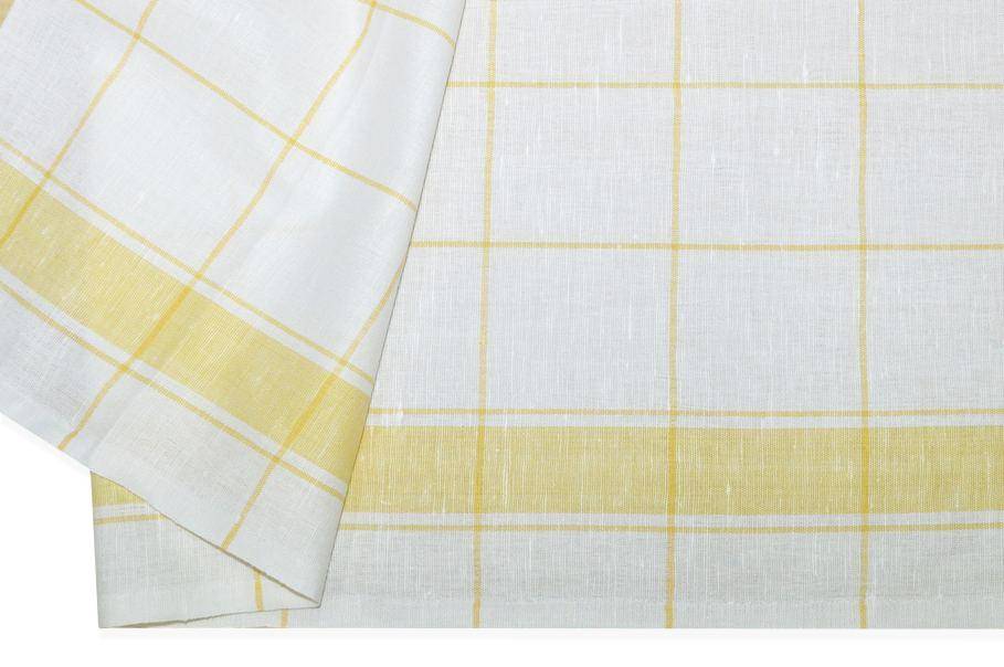 Ottimo tessuto in misto lino con fantasia a quadri e righe disponibile in ben tre colorazioni: blu, verde e giallo per rispondere a tutte le esigenze.