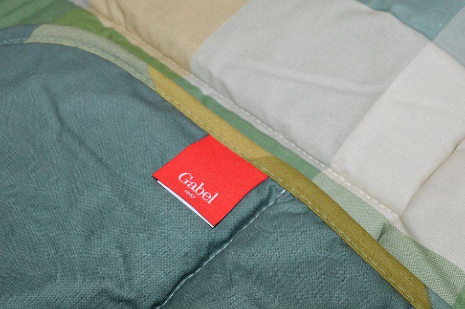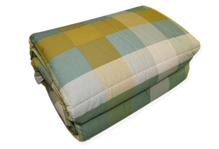 Composizione tessuto superiore di cotone saia jaquard, tessuto inferiore 100% madapolam di puro cotone, imbottitura 100% fibra anallergica di poliestere da 320 gr/mq. Misura 170x260 cm.