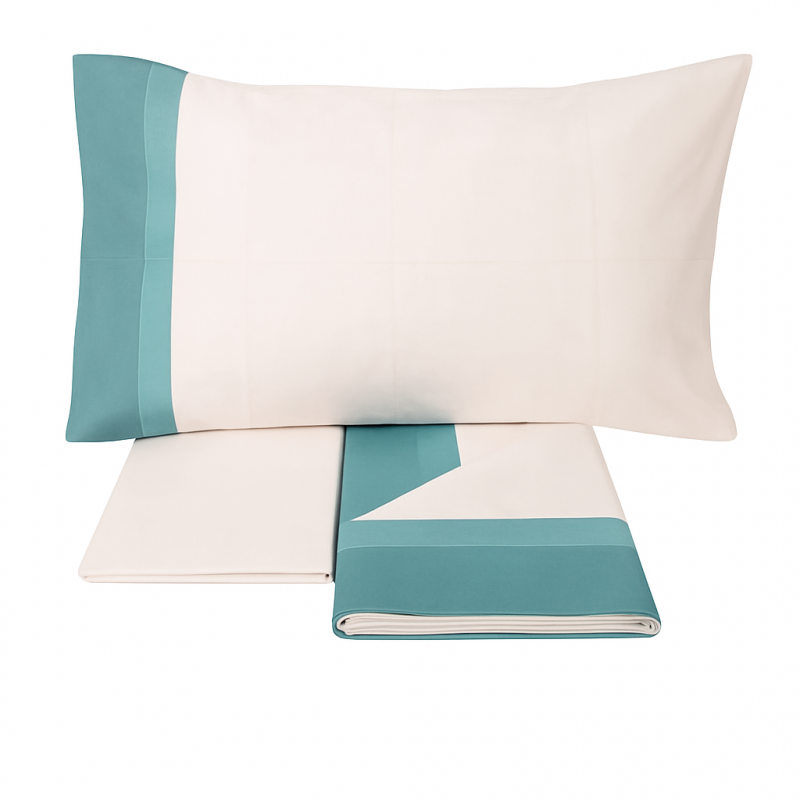 Composizione tessuto 100% puro cotone. Misura lenzuolo superiore cm 260x290, lenzuolo sotto cm 180x200 con angoli elasticizzati, n.2 federe cm 52x82.