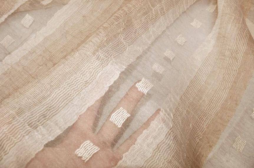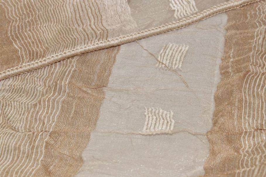 Tessuto indicato per la confezione di tende sia con onde morbide, sia con arricciature ricche e voluminose. Viene caratterizzato da una fantasia a fasce verticali che alterna bande di media coprenza a sezioni trasparenti e filtranti alla luce.