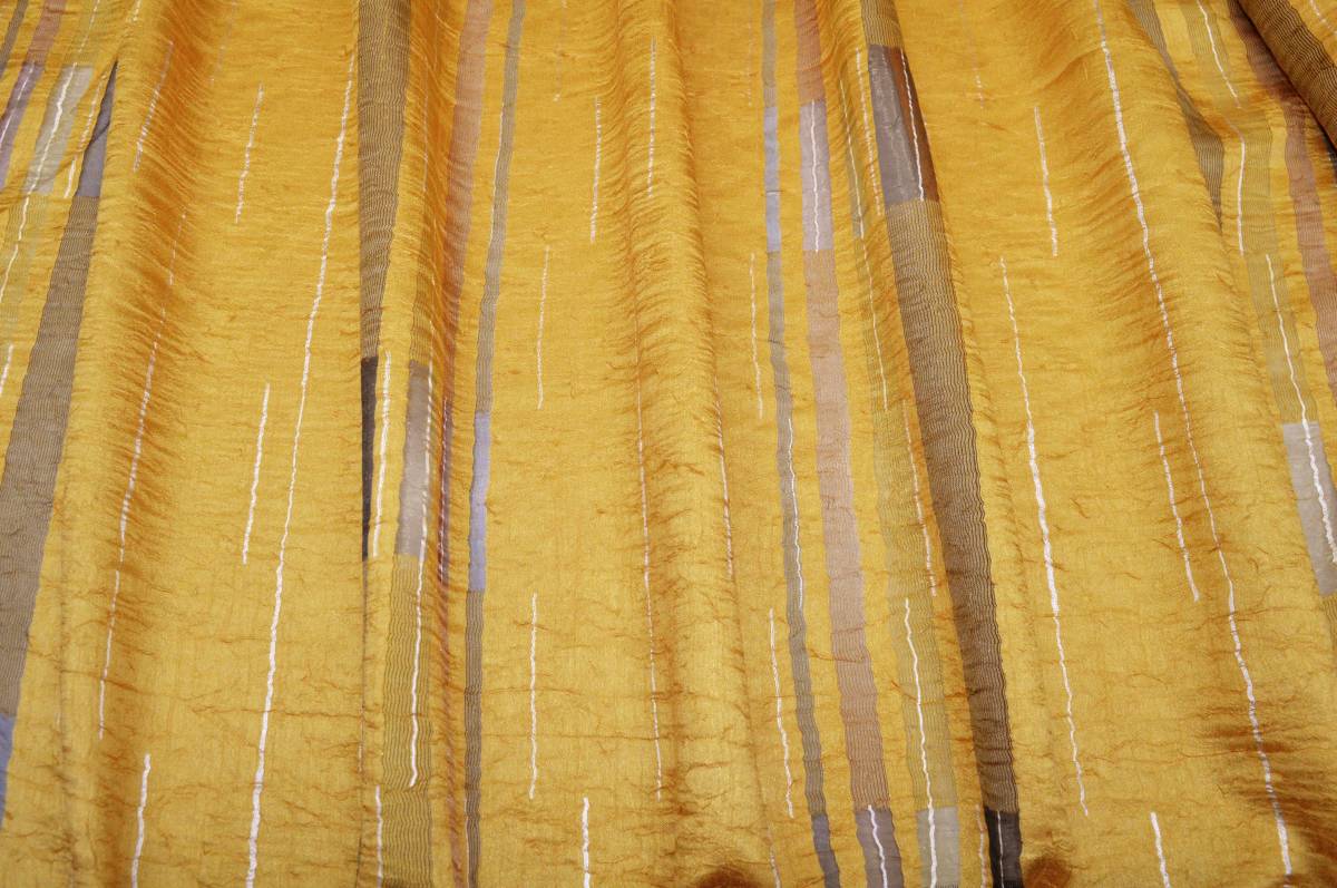 Tessuto in organza leggero e semi-trasparente, dall’aspetto elegante e molto luminoso. Il fondo presenta una vivace colorazione giallo/oro adatta per ambianti prevalentemente classici.