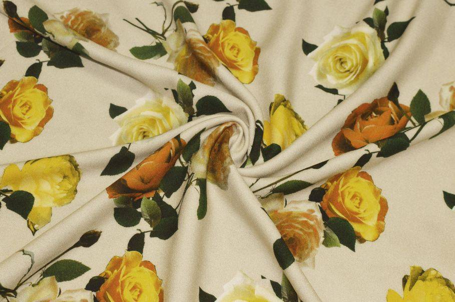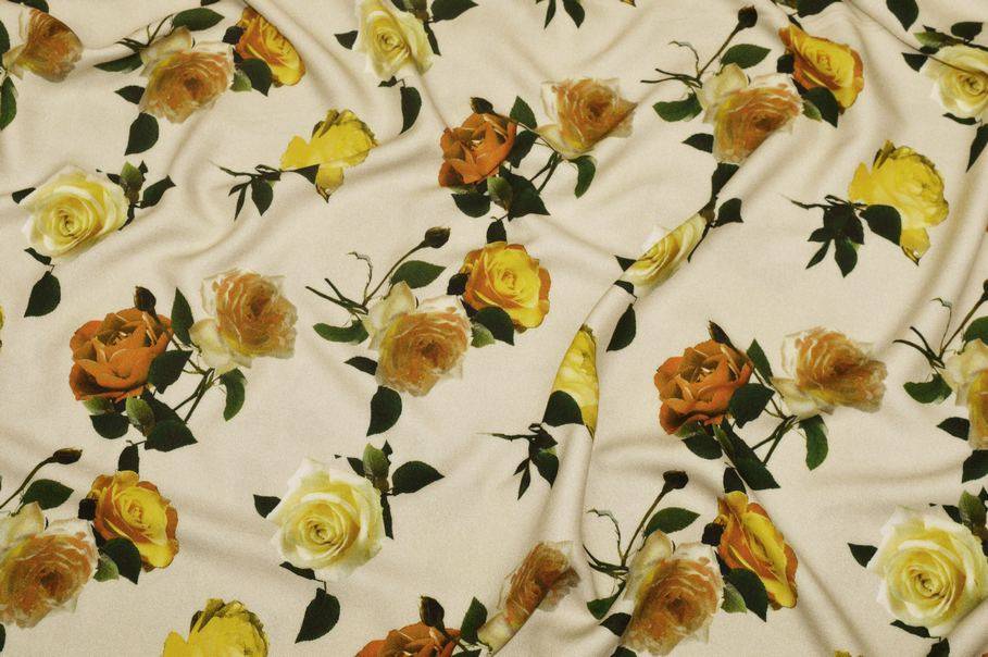 TESSUTO CREPE PURA VISCOSA FANTASIA ROSE GIALLE