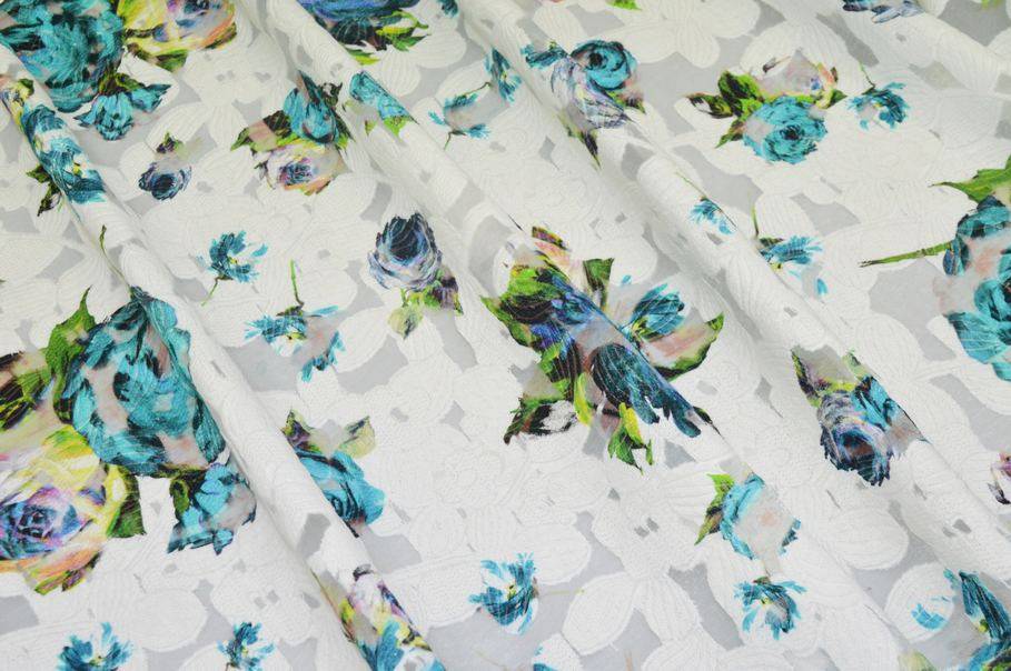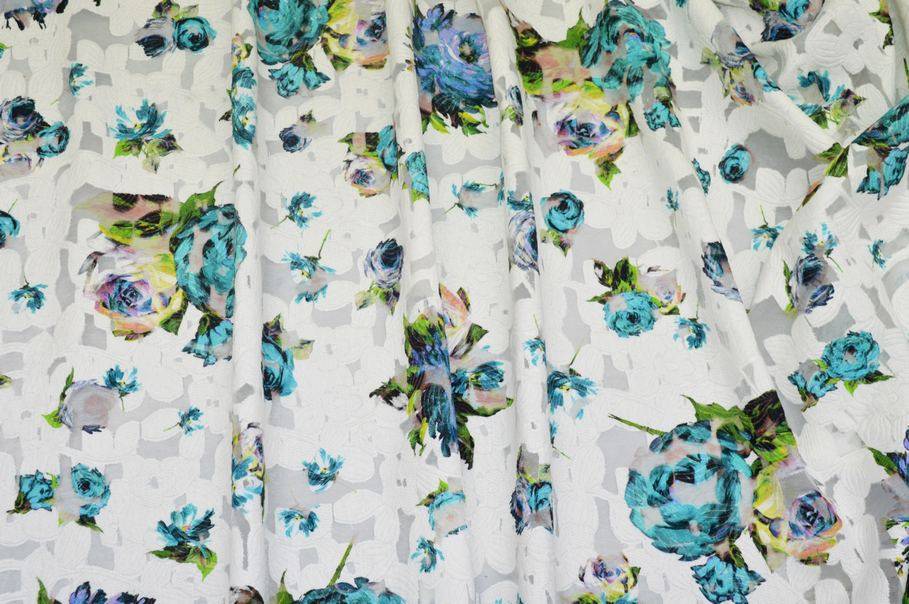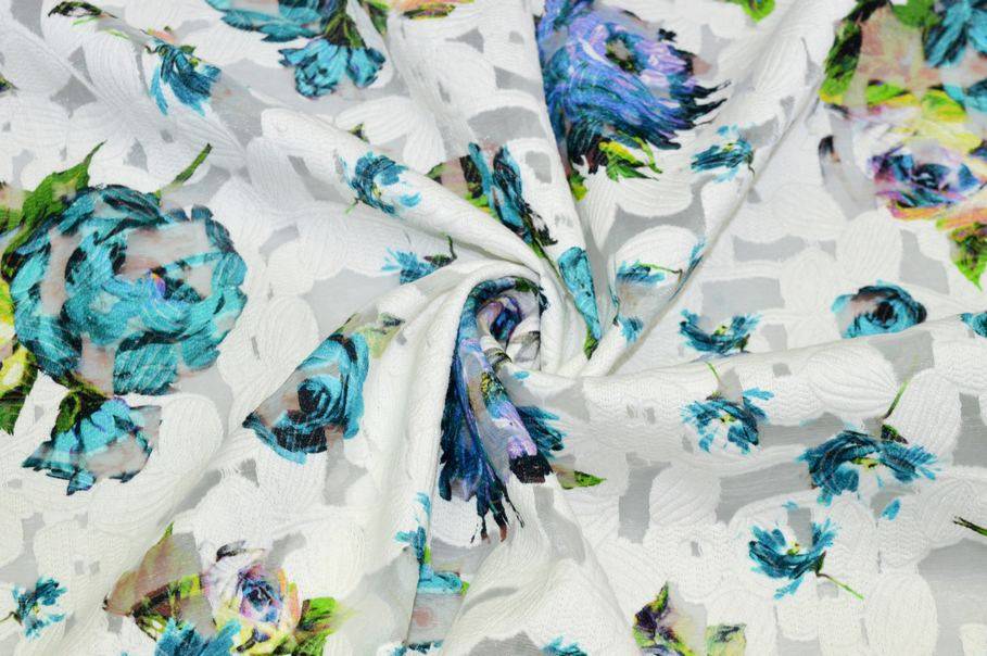 TESSUTO VISCOSA DEVOREH FIORE AZZURRO